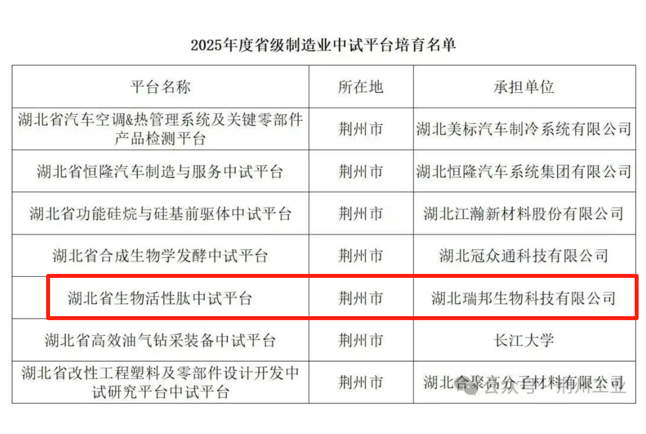 湖北瑞邦生物科技有限公司,成立于2007年12月,位于湖北省荊州開發區,公司注冊資本1億元,公司占地面積400余畝,目前在崗職工300余人,年產能10000噸,主營生物活性肽系列產品(包括各類動物肽、植物肽)。公司自2005年起開始關注研究生物活性肽生產技術,是國內生物活性肽行業創始企業之一,亦是生物活性肽生產企業的領軍企業;目前公司產能位于全國第一,全世界第三。